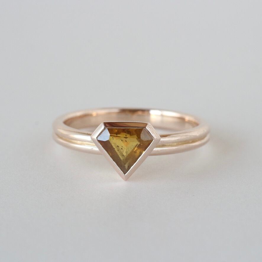 色が濃く、インクルージョンも多めのワイルドなイエローサファイアです。