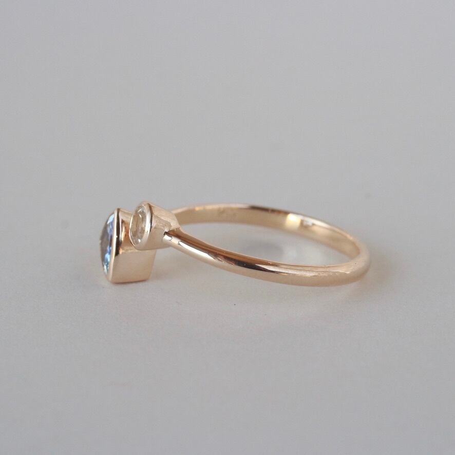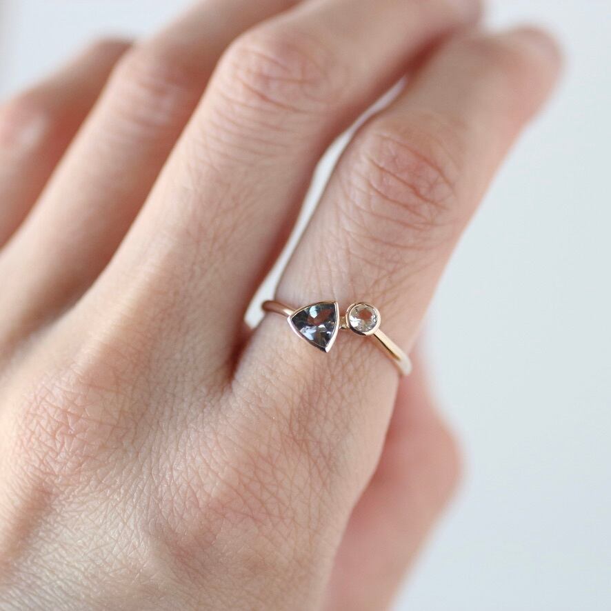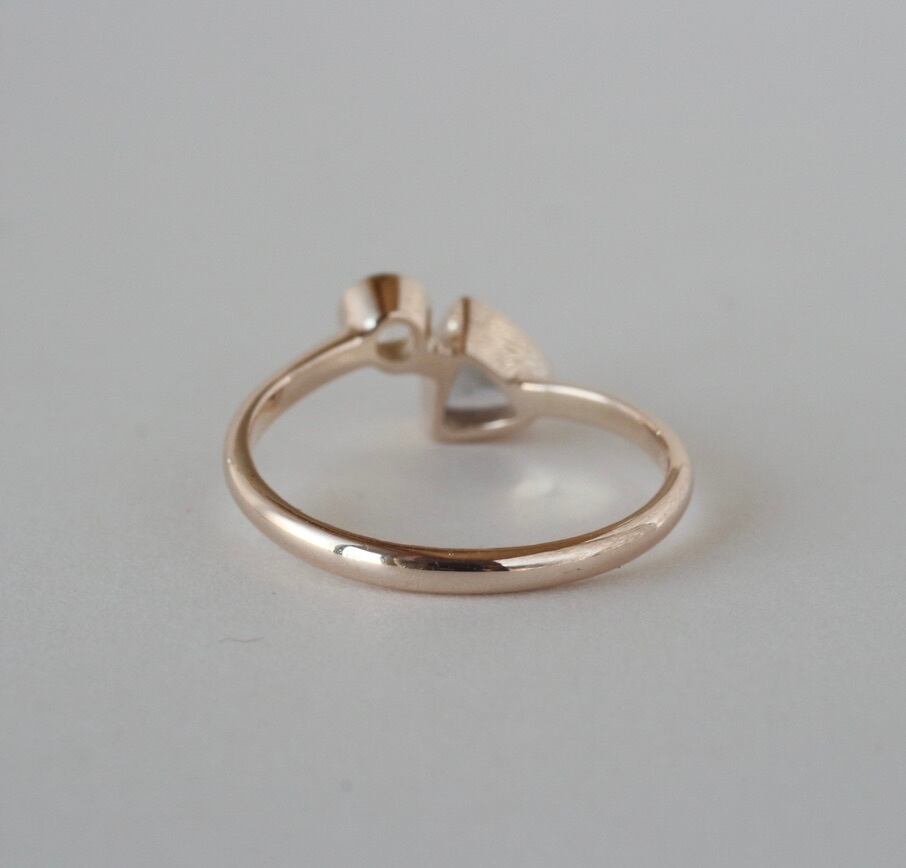 立体的になるよう2つの宝石を斜めに配置し、腕部分も捻ったような立体的なデザインにしています。シンプルですが使いやすいデザインを目指しました。