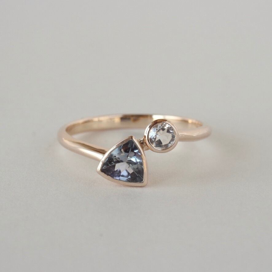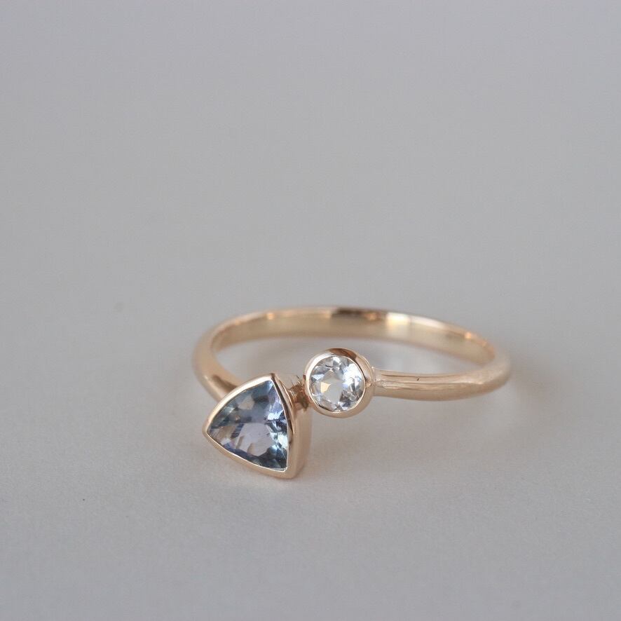 ほんのりバイカラーのゾイサイトとゴッシェナイト(透明なベリル)のコンビリングです。