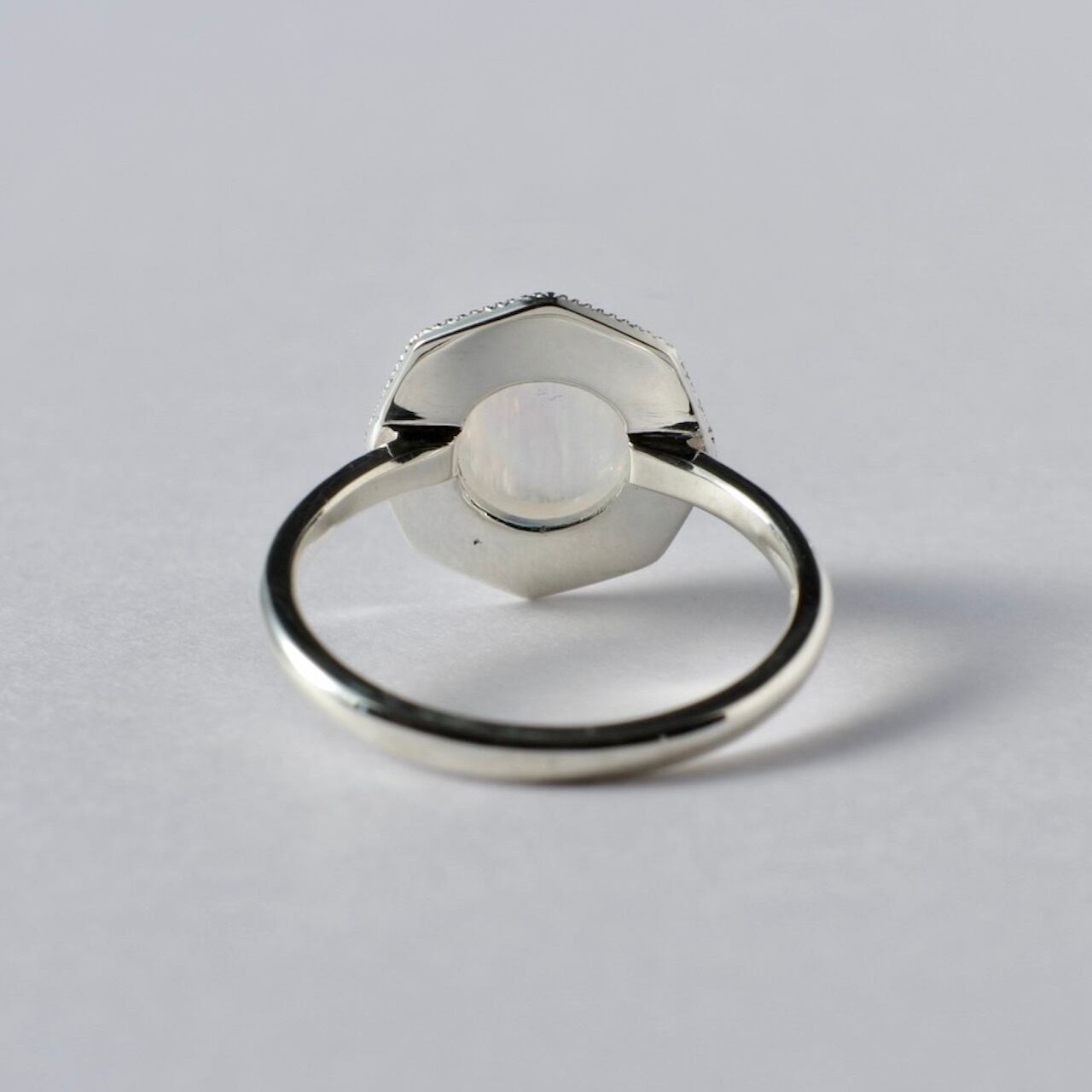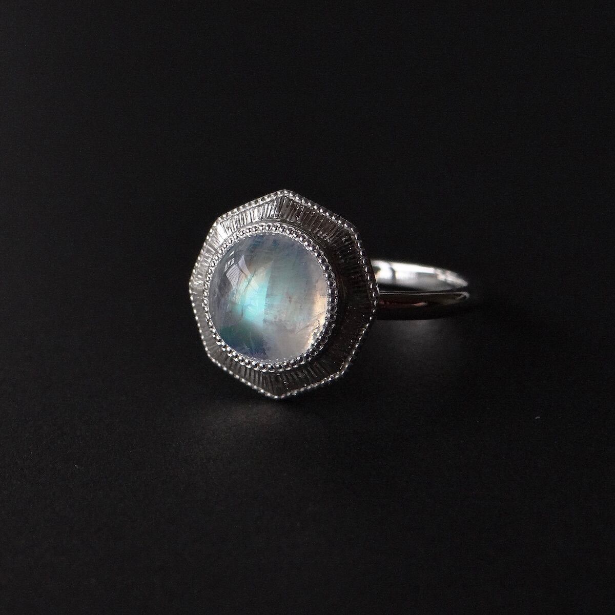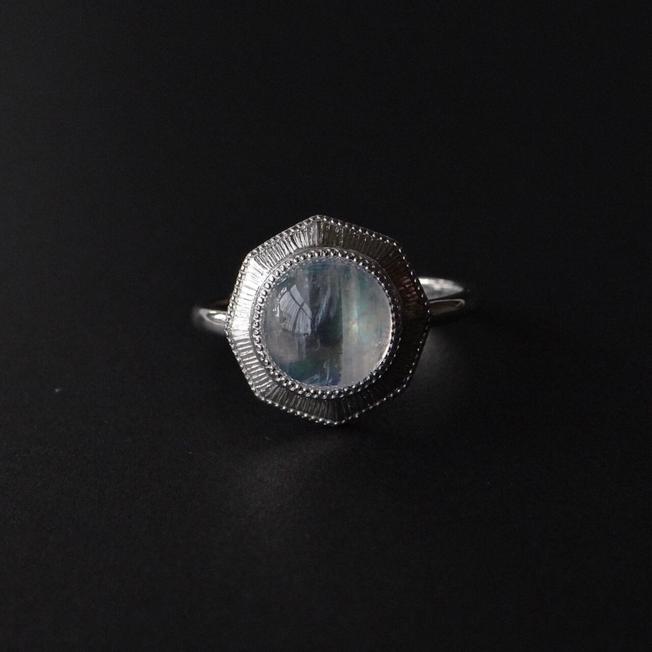 ホワイトラブラドライトのシルバーリング(オクタゴン)です。