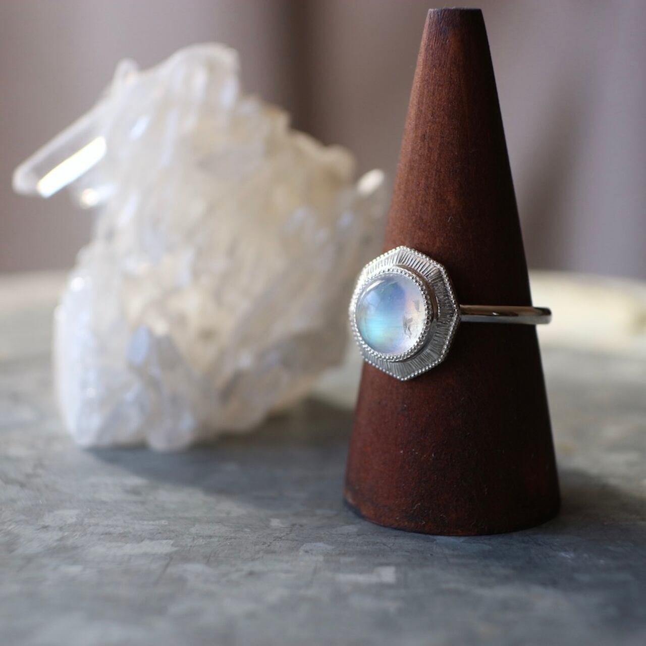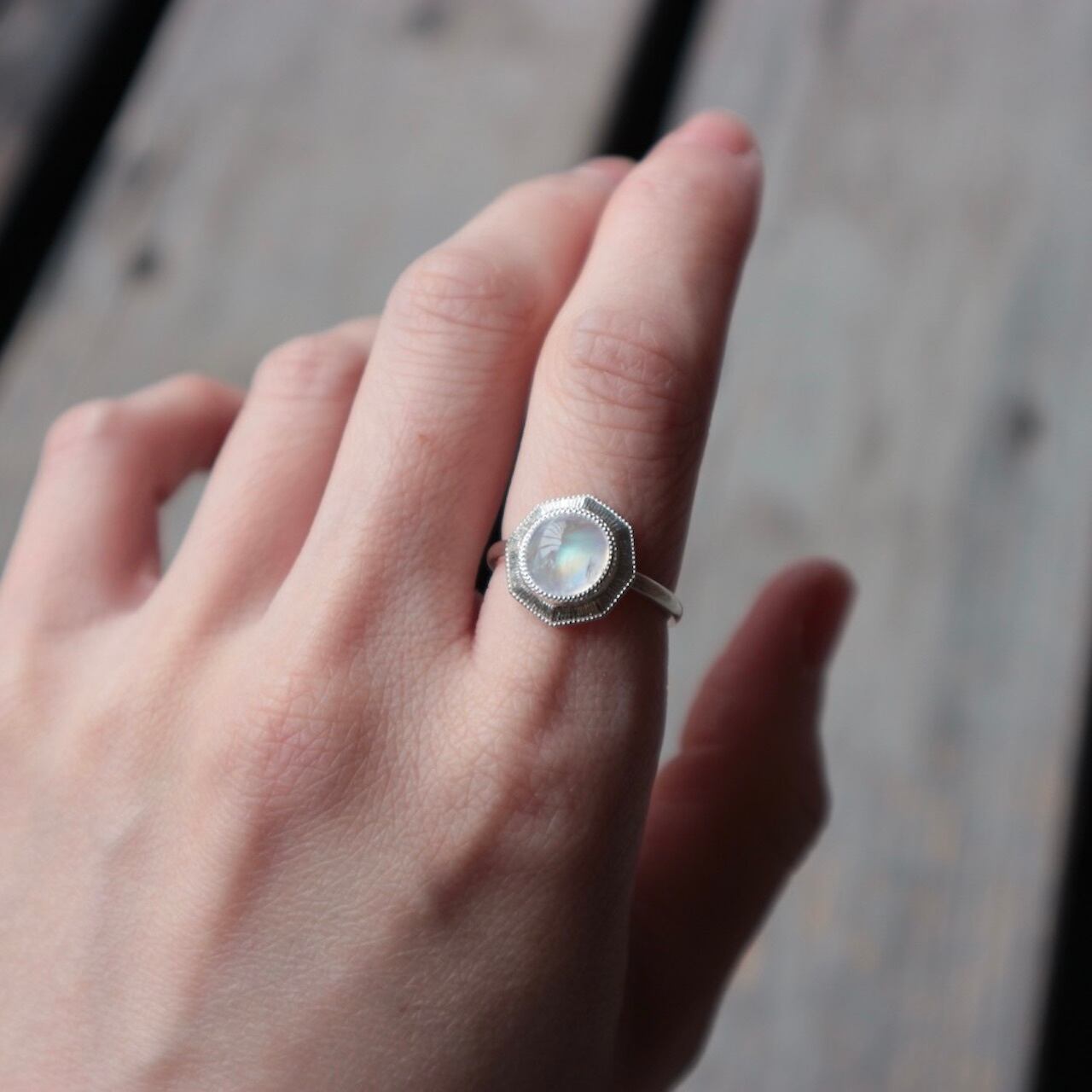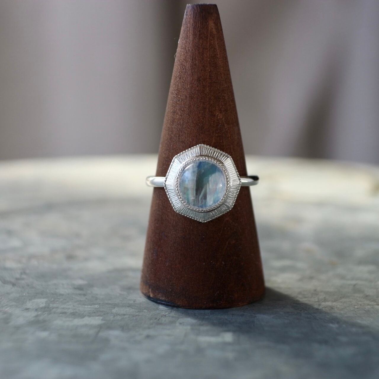 ホワイトラブラドライトのシルバーリング(オクタゴン)です。