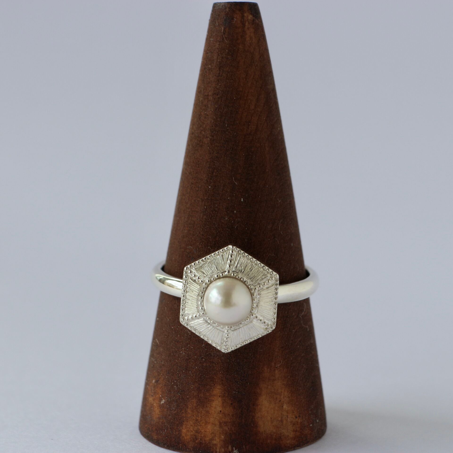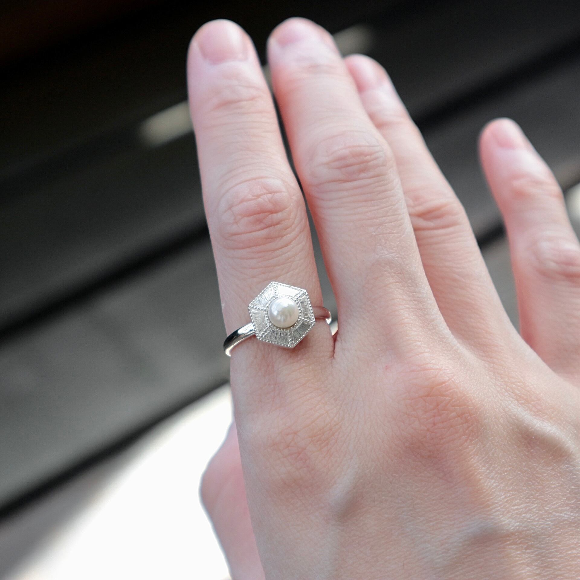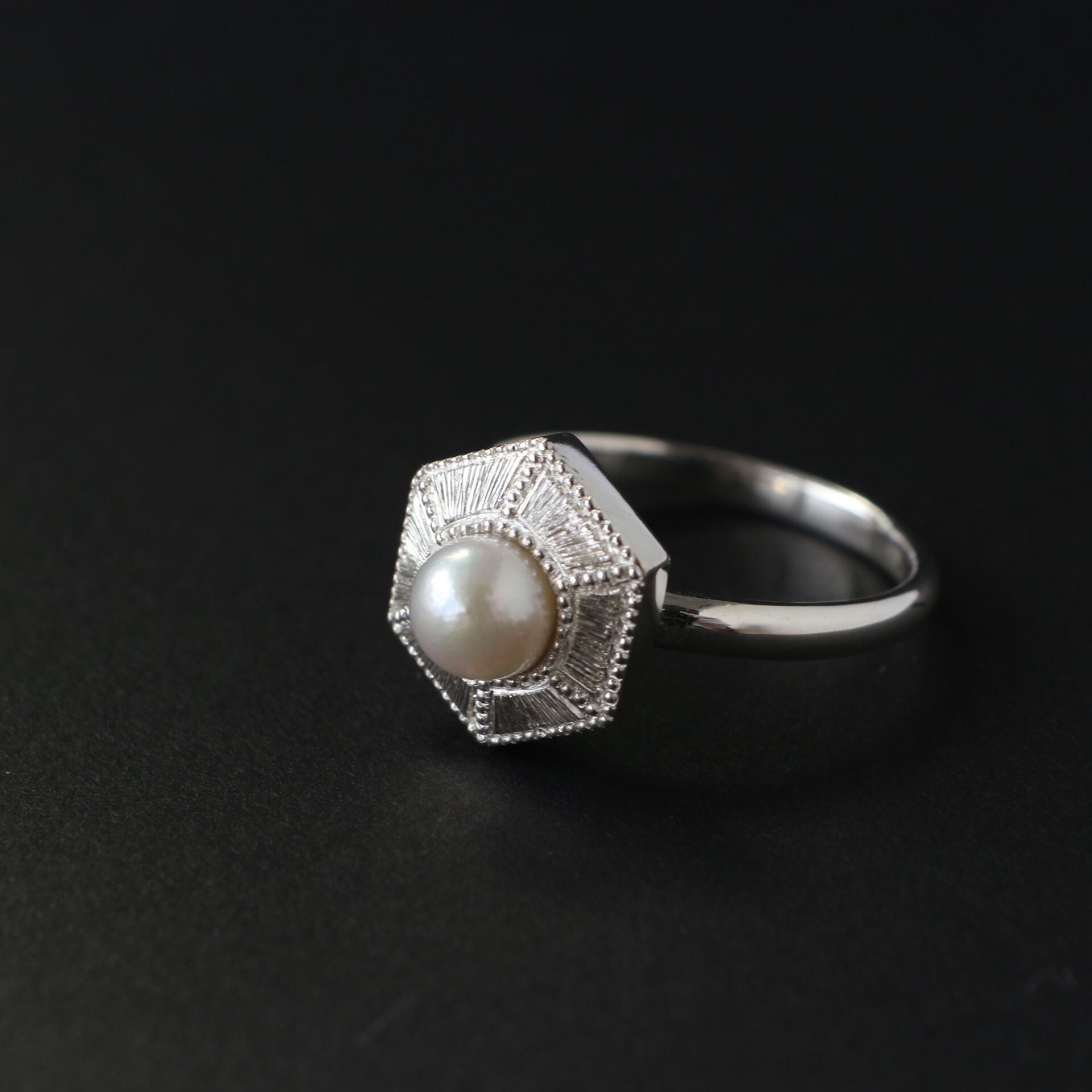 小さなあこや真珠(スリークォーター型)を使用したリングです。