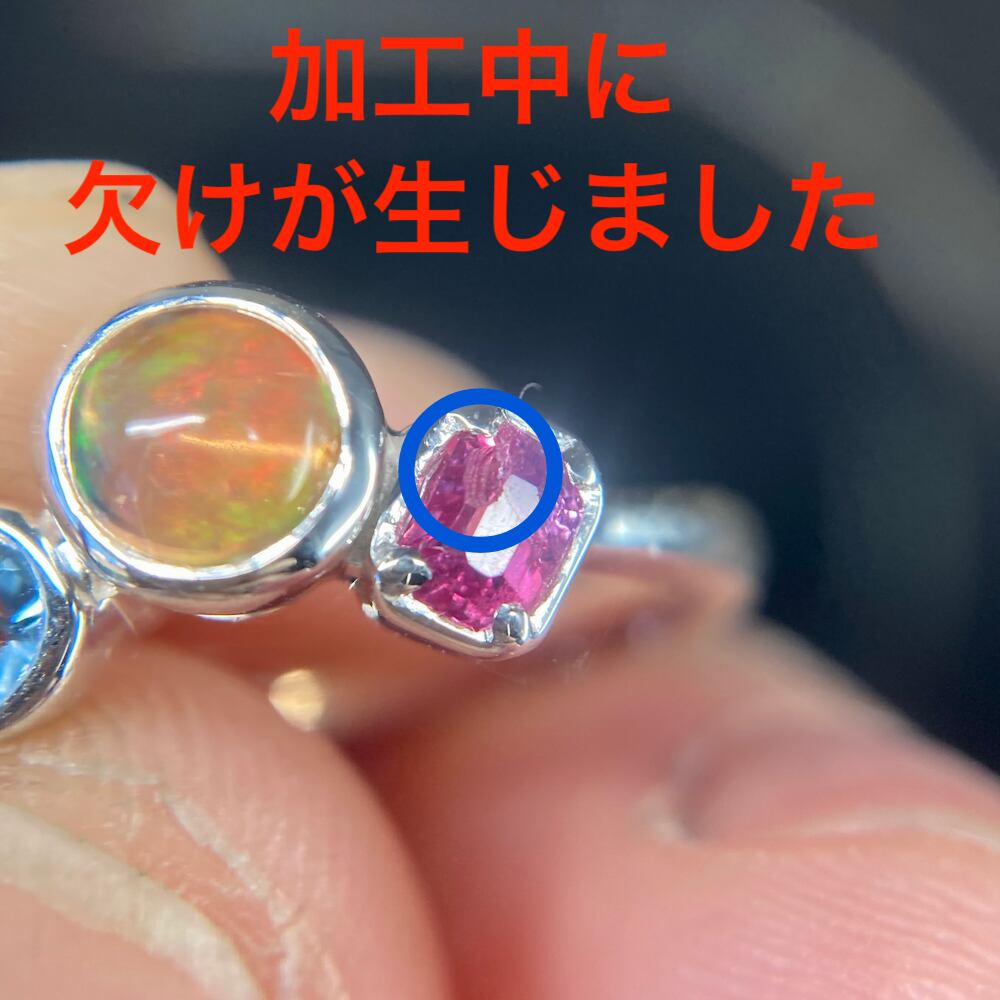 ②ピンクサファイア のみ加工中に欠けを生じさせてしまったこと